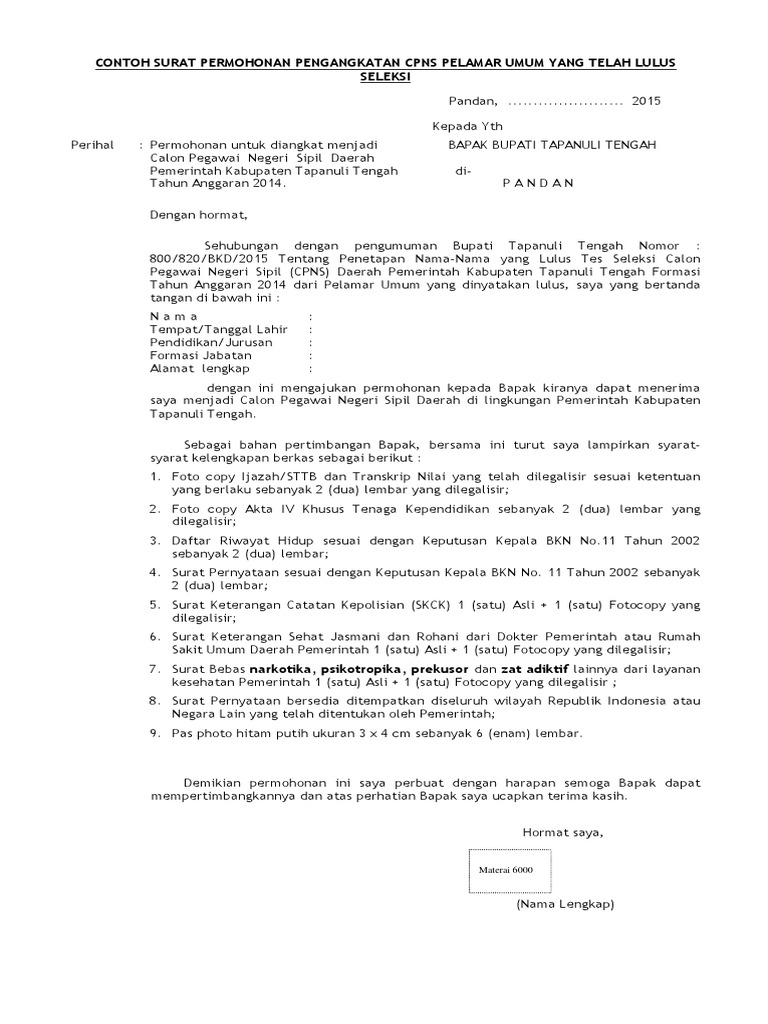 Download Contoh Format Surat Lamaran Pernyataan Seleksi CPNS …