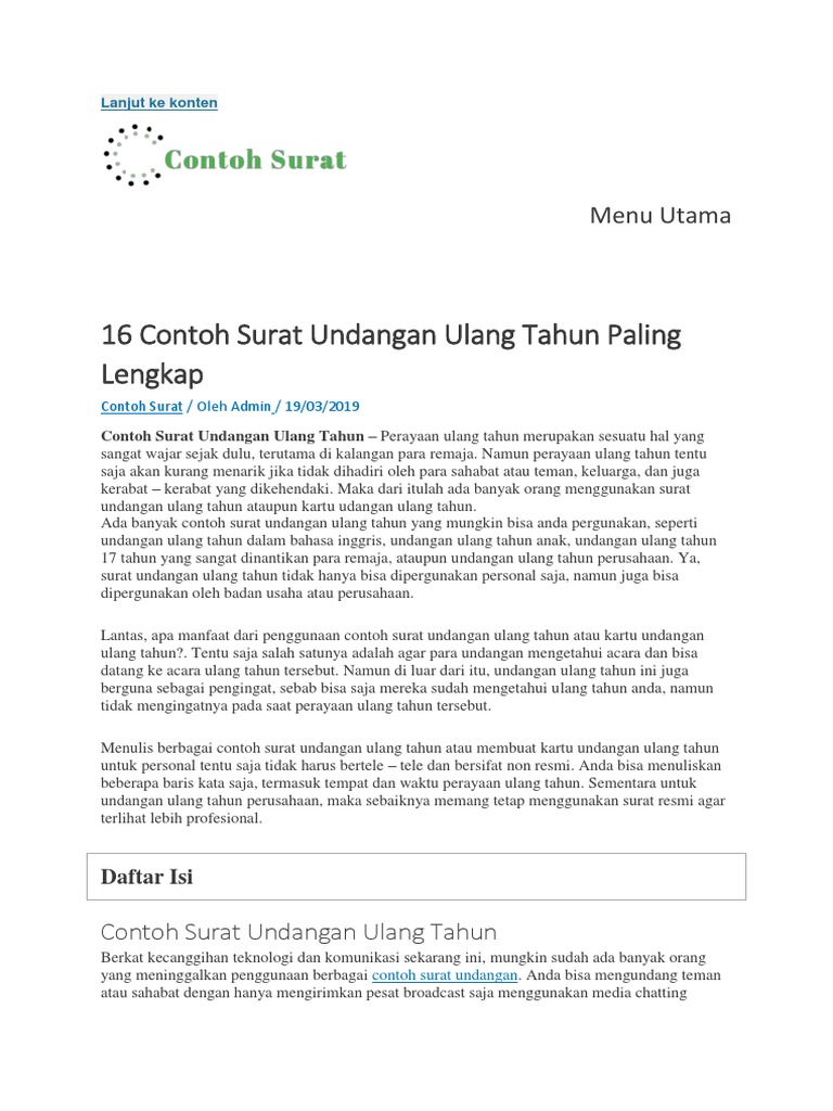 Contoh Surat Undangan Ulang Tahun - Surat Undangan - CARApedia