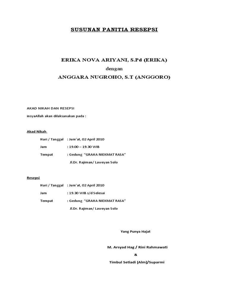 Undangan Pembentukan Panitia Resepsi Pernikahan Doc