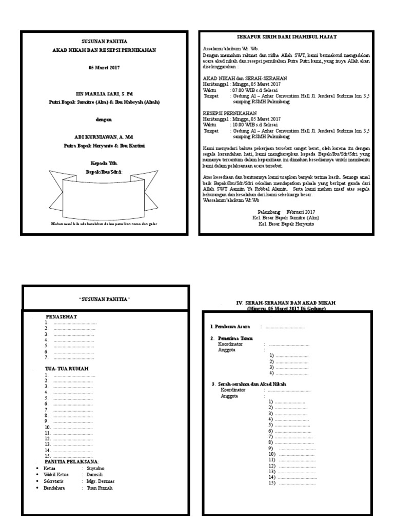 Contoh Susunan Panitia Acara Pernikahan Di Gedung