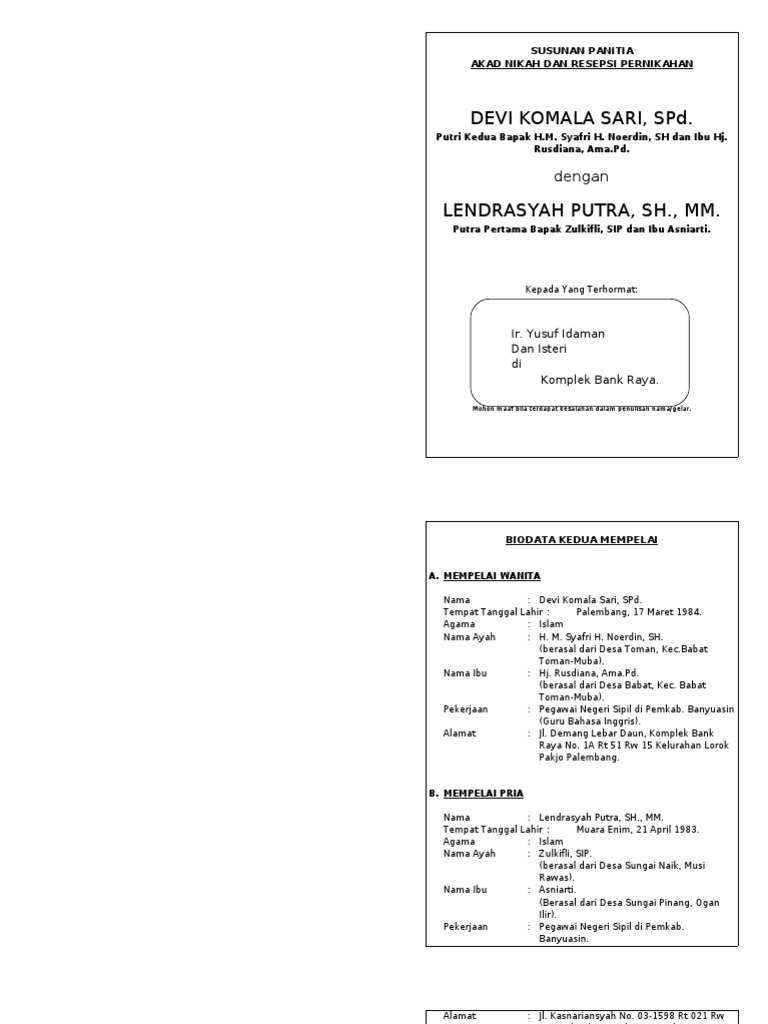Susunan Panitia Akad Nikah Devi Komala Sari Versi 2003