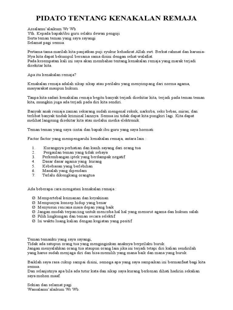DOC) Pidato Kenakalan Remaja | Wira Praja - Academia.edu