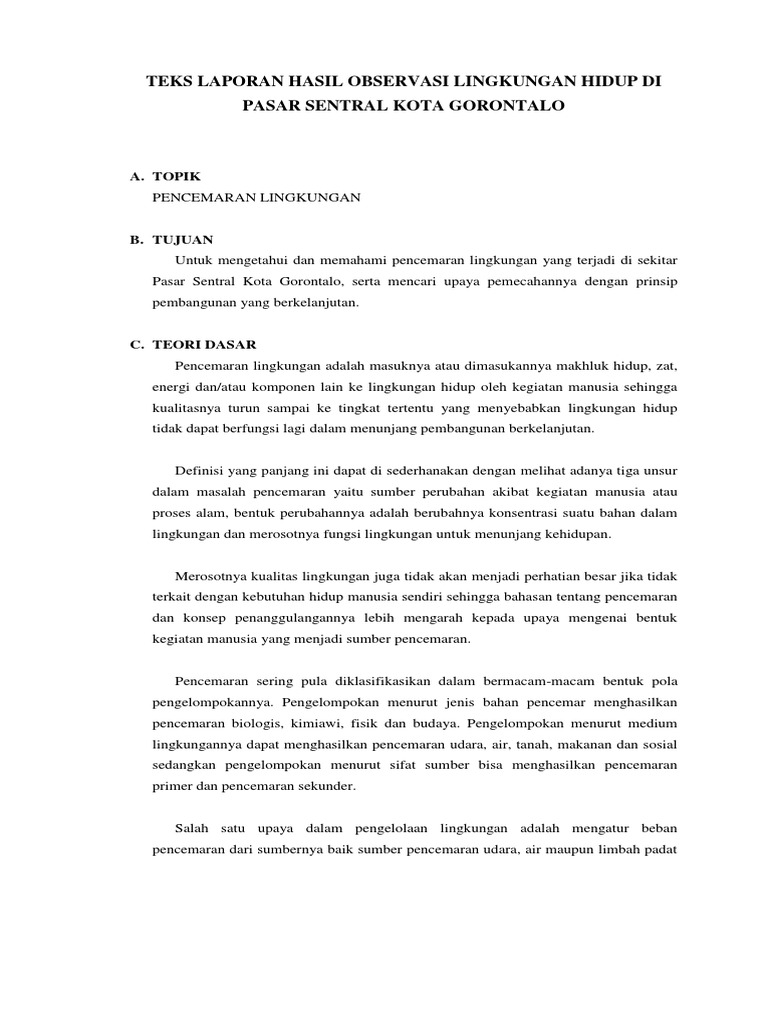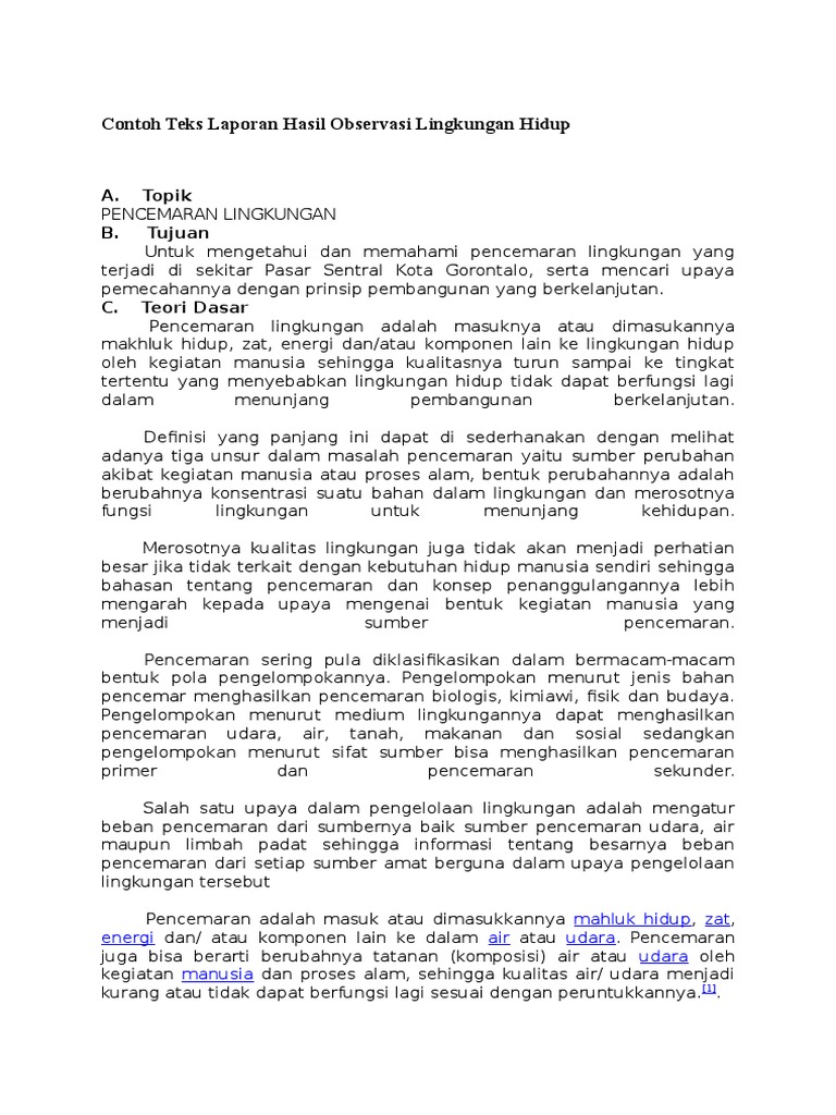 Contoh Teks Laporan Hasil Observasi Lingkungan Hidup