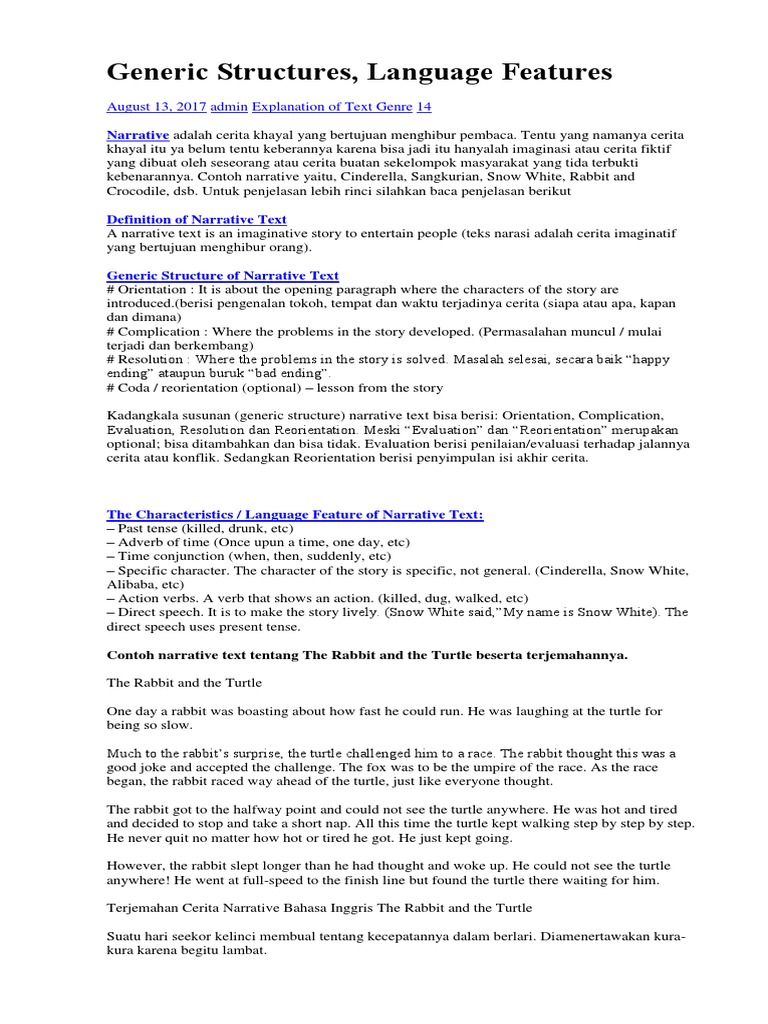 Contoh Narrative Text Beserta Generic Structure Dan Language Features Barisan Contoh – Cute766