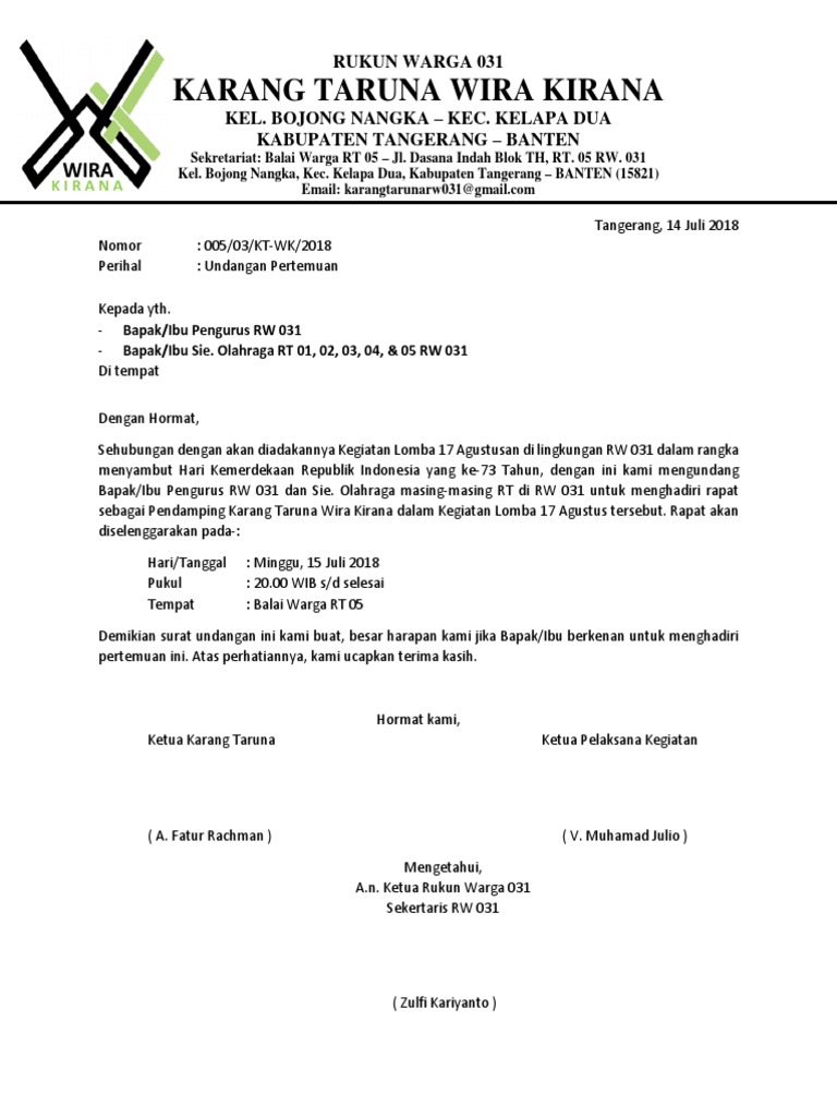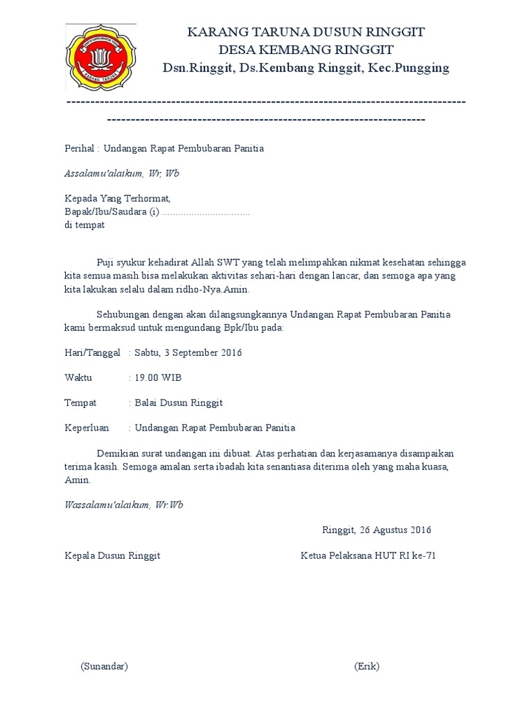 Contoh Surat Undangan Rapat Karang Taruna 17 Agustusan di 2020 …