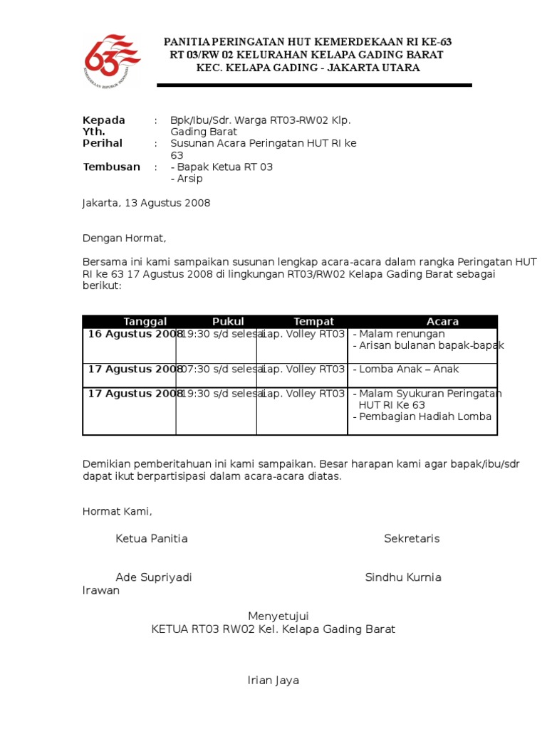 DOC) Surat Undangan Agustusan | Jennevan Trenggono - Academia.edu
