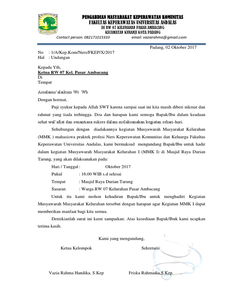Contoh Surat Undangan Komunitas – Gambaran