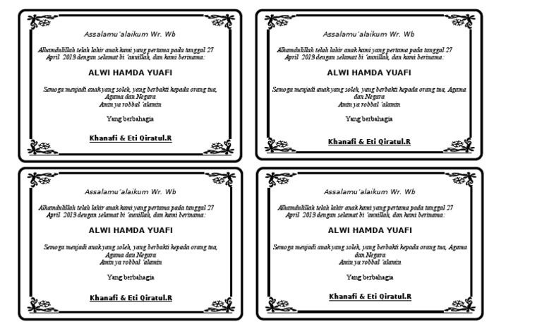 Contoh Undangan Aqiqah Doc Simpel (Kertas A4 Dibagi 4)