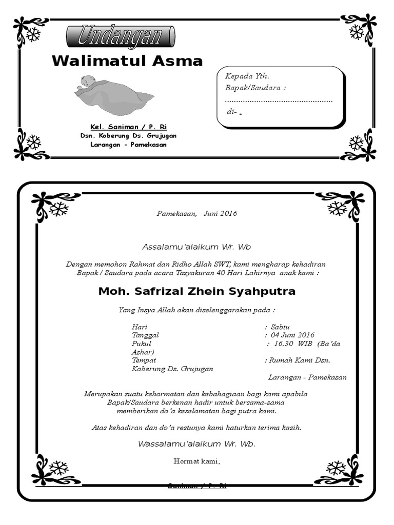 Contoh Surat Undangan Tasyakuran dan Marhaban Bayi | Undangan, Surat, Bayi