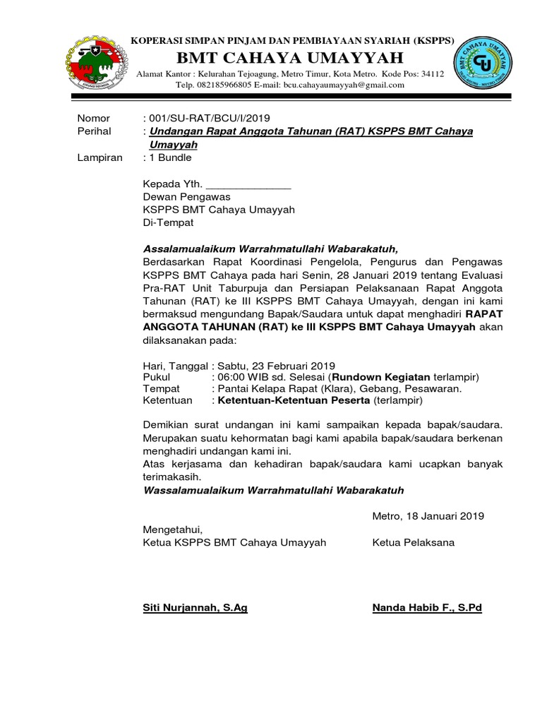 Contoh Surat Undangan Rapat Akhir Tahun Koperasi Berbagi – Corona …