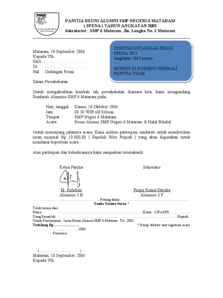 Contoh Surat Undangan Reunian Smp β Pigura