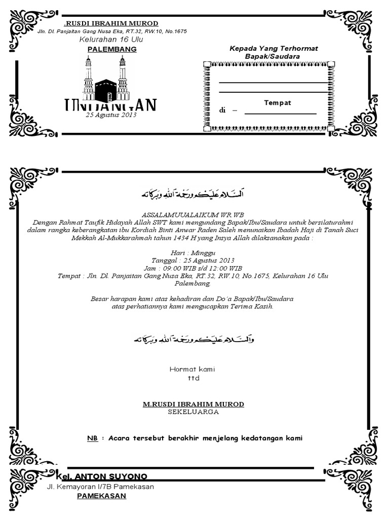 Contoh Undangan Tasyakuran Haji Pdf - Nusagates