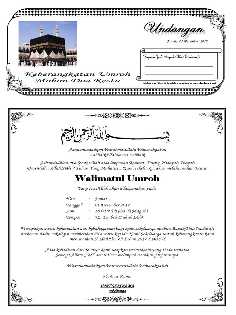 Contoh Undangan Umroh - Berita Umroh Haji | UmrohHajiNews.com