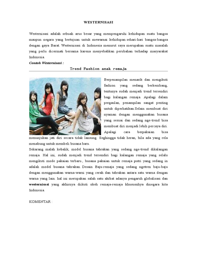 Westernisasi Budaya ⋆ DOC | PDF ⋆ Download Contoh Makalah Lengkap