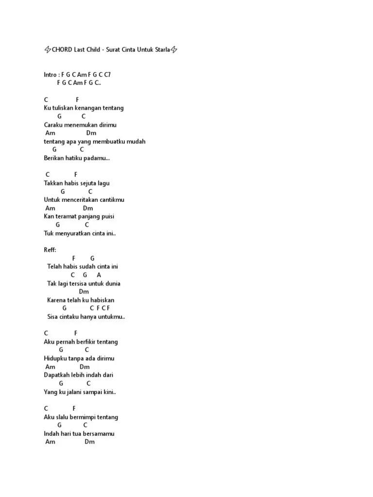 Lirik Lagu Surat Cinta Untuk Starla Chordtela Suratlamaran - Cute766