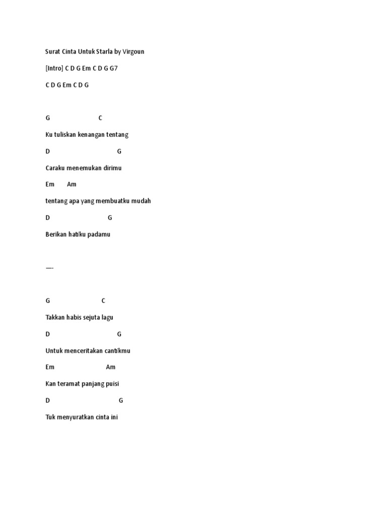 Yoga Dachi on Twitter: “Sheet Music / Chord Surat Cinta Untuk Starla - Virgoun https://t.co/119J7qxS2h… "