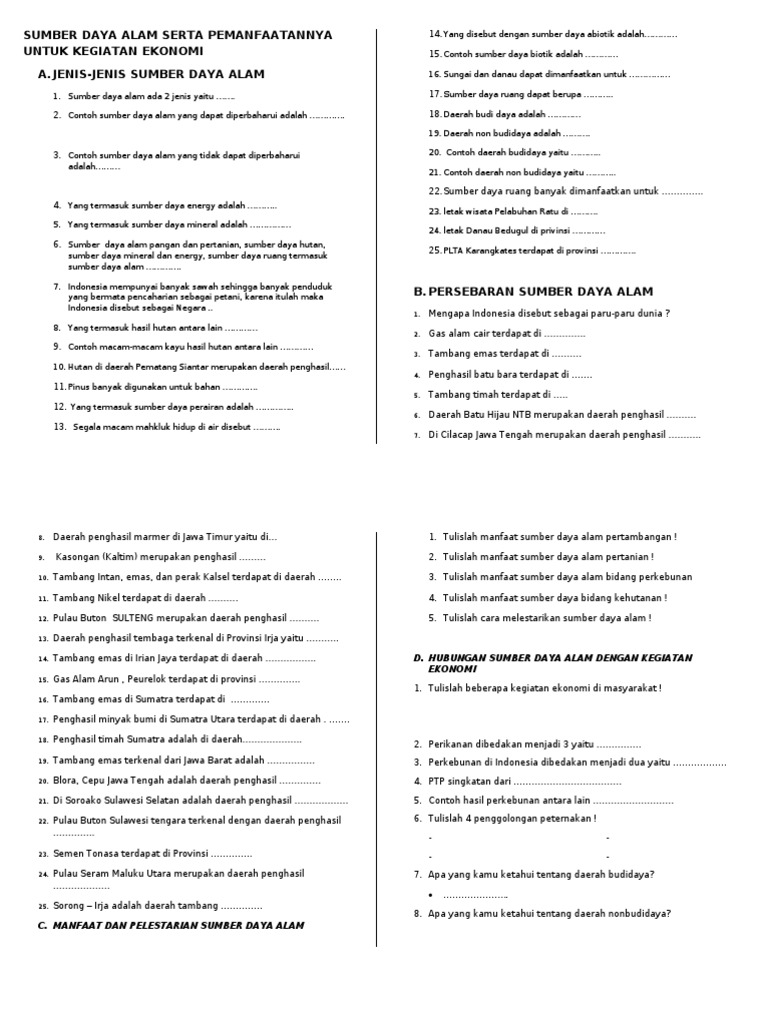 Manajemen Sekolah: Lembar Kerja Peserta Didik Potensi Sumber Daya Alam Indonesia dan Pemanfaatannya