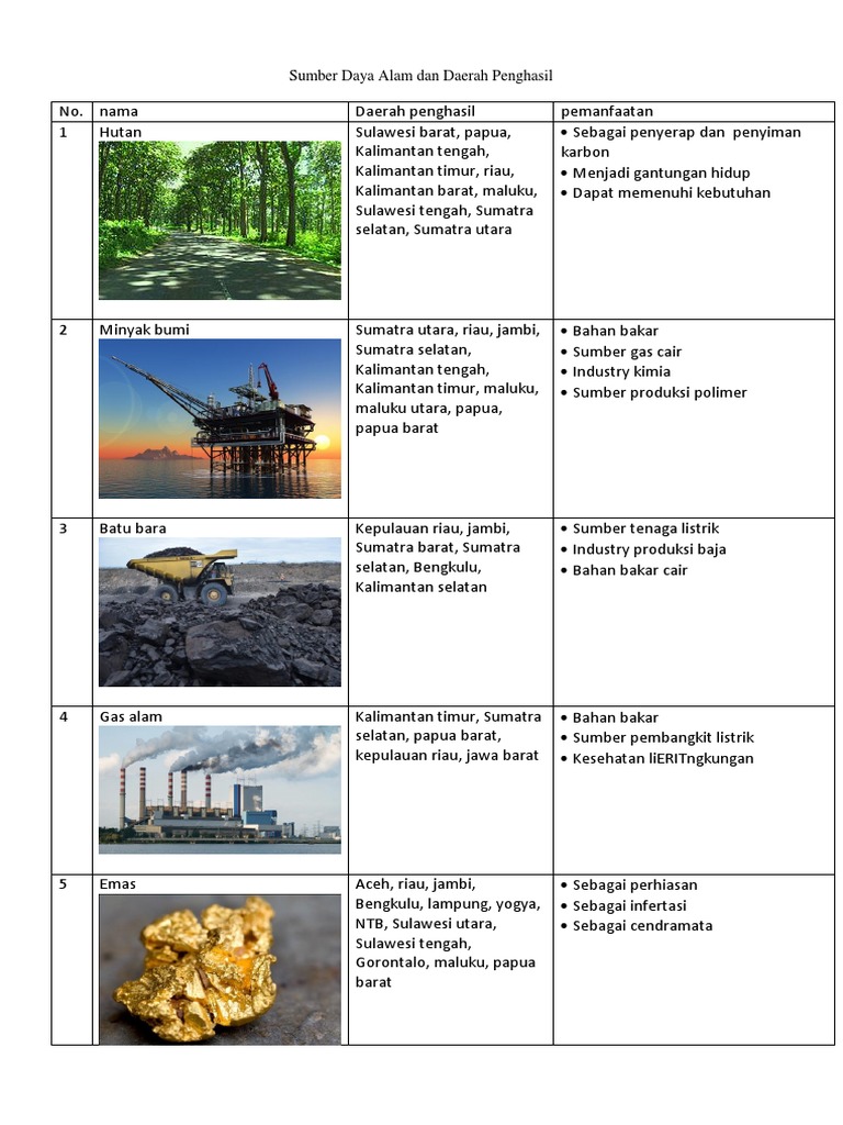 pemanfaatan dan daerah penghasil sumber daya alam indonesia - Brainly.co.id