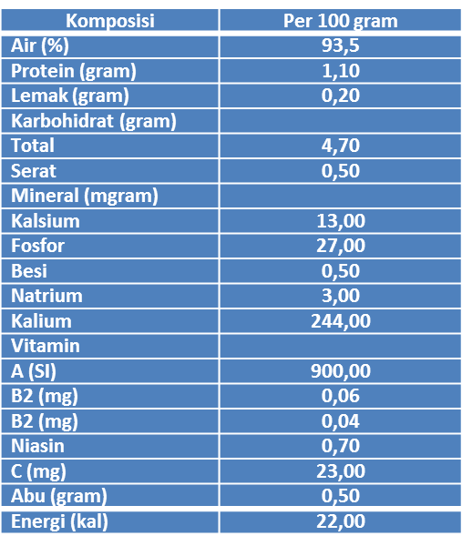 Daftar Komposisi Bahan Makanan Per 100 Gram