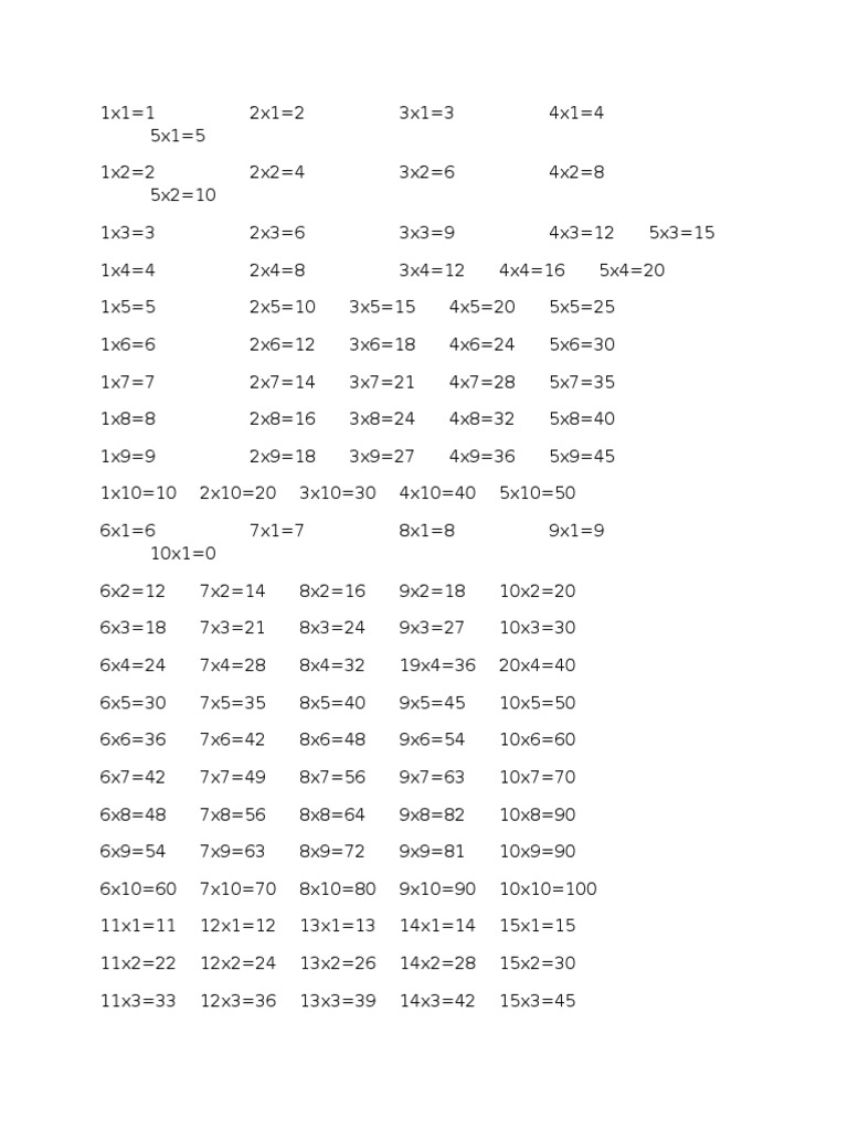 Tabel perkalian 1-200, pembagian, pengurangan, dan penambahan …