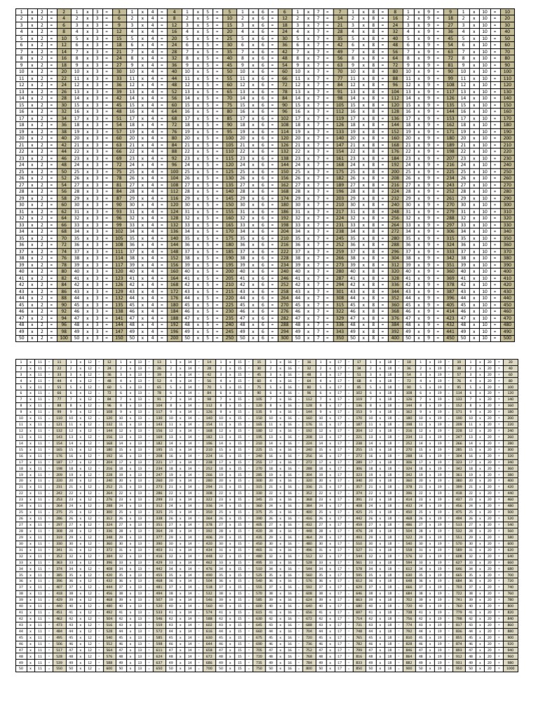 Perkalian 1 Sampai 1000 (Tabel Perkalian 1 - 20)