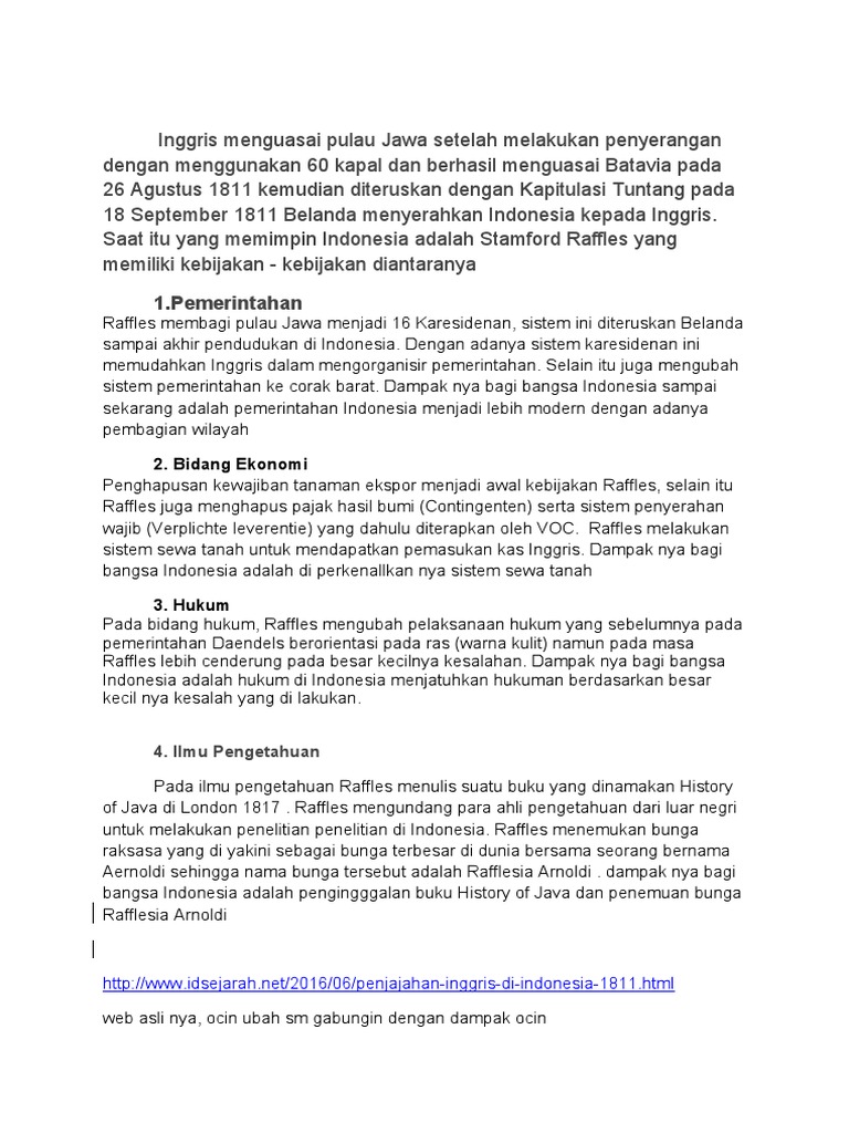 Pengaruh Penjajahan Inggris di Indonesia Dan Kebijakan - Kebijakan …