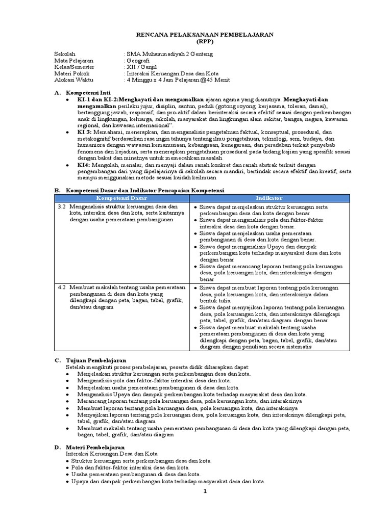 2. RPP Geografi XII - Interaksi Desa dan Kota