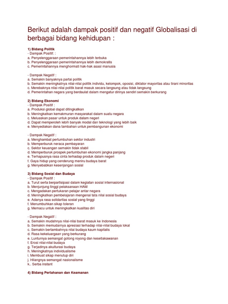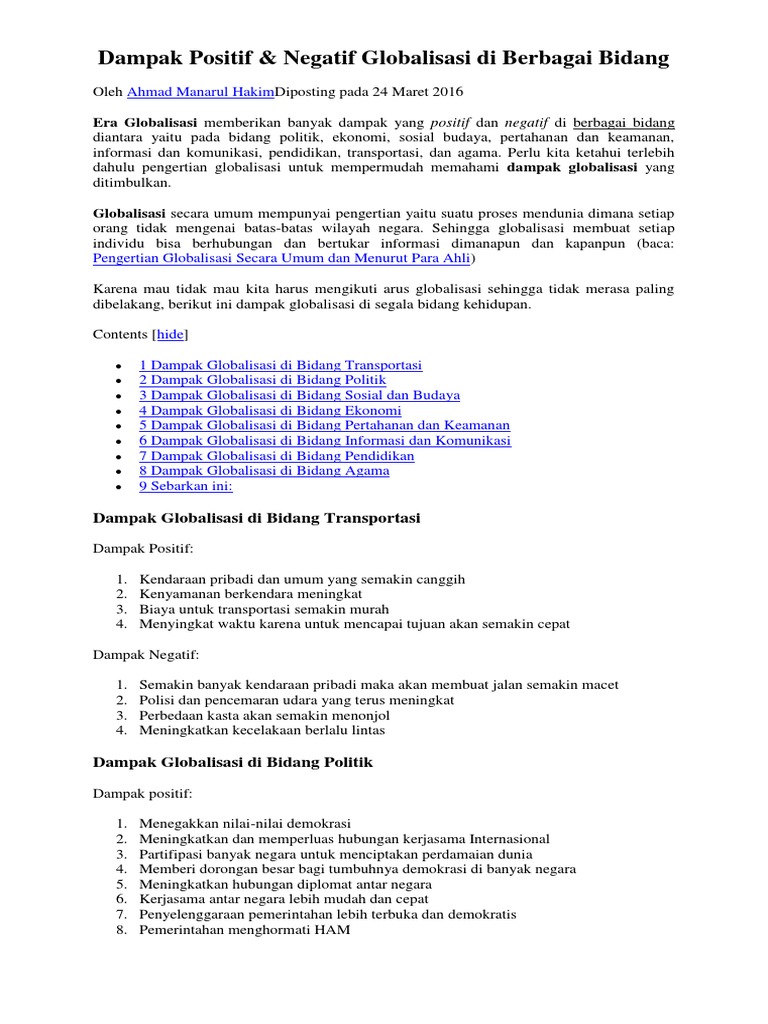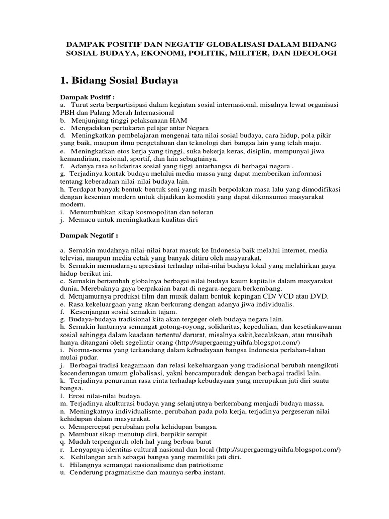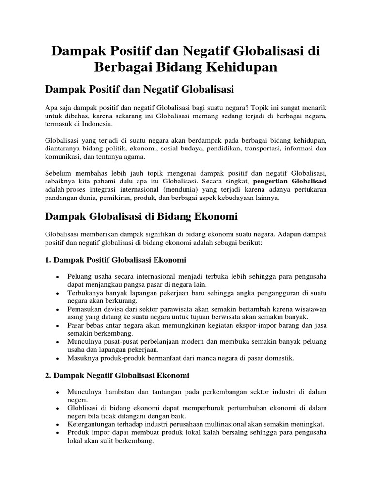 DOC) DAMPAK POSITIF DAN NEGATIF GLOBALISASI | Naufal Rafiyanto - Academia.edu