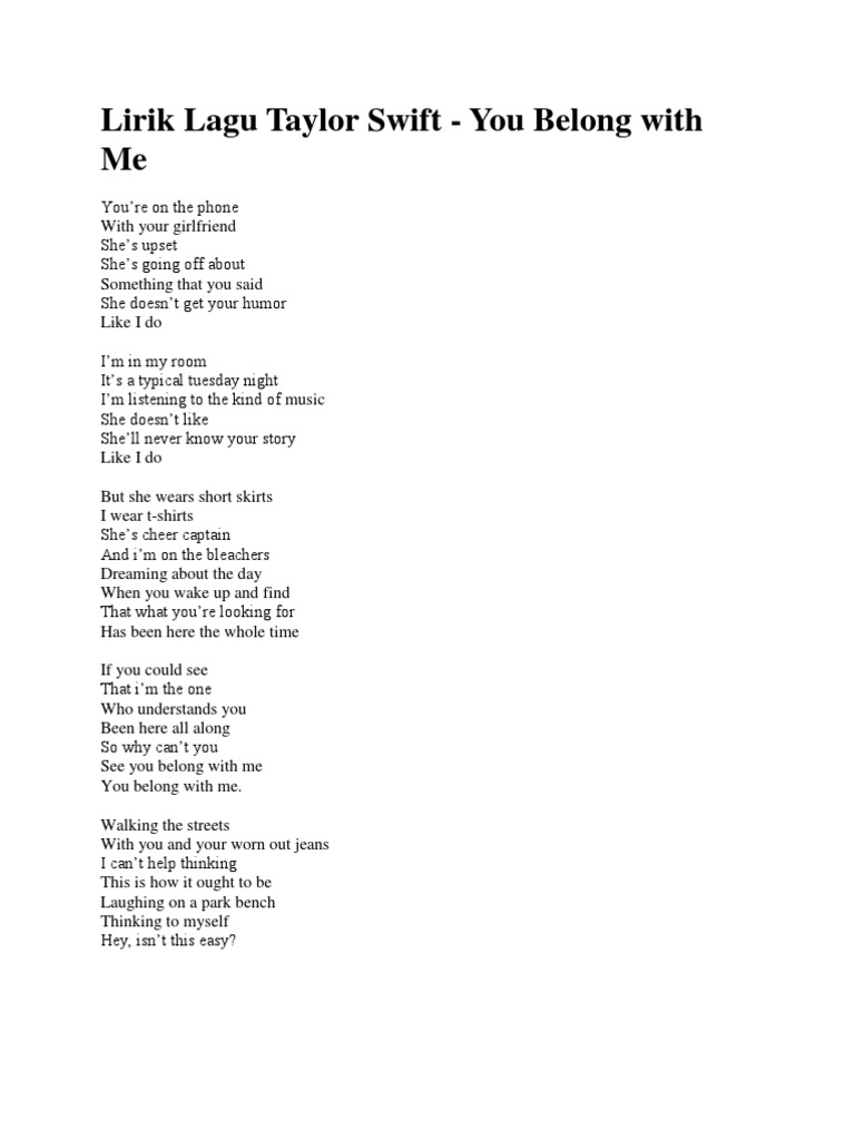 (LYRIC) Taylor Swift-You Belong With Me – Loves and Lifes