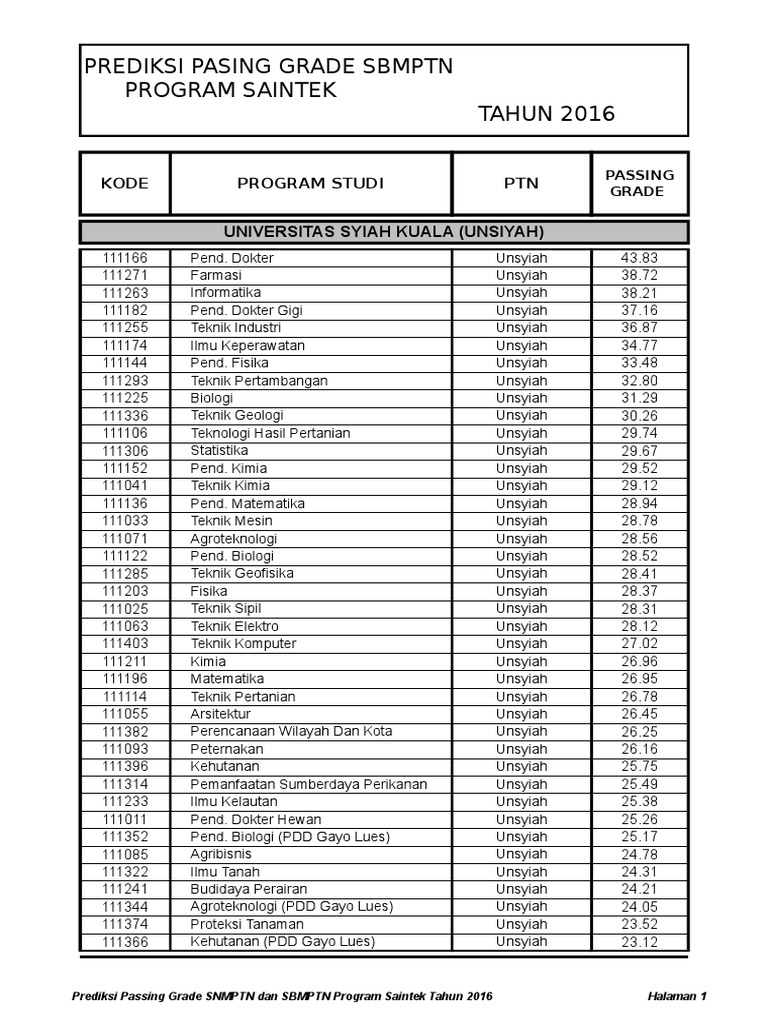Passing Grade Snmptn Unsri 2019 – IlmuSosial.id