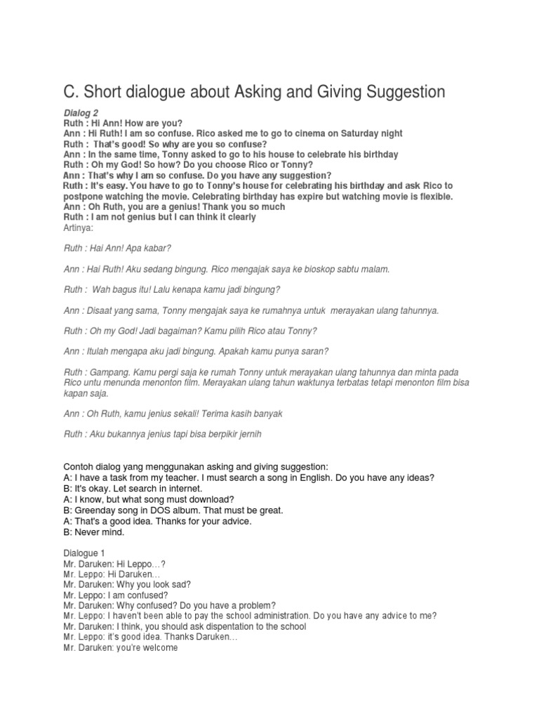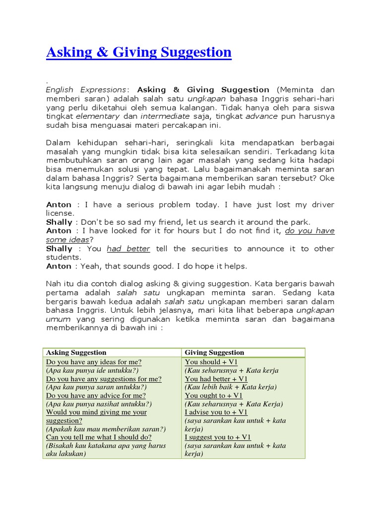 Asking for and Giving Suggestion (Contoh Ungkapan dan Dialog …