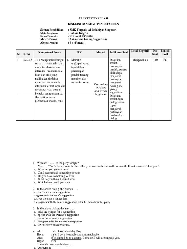 Contoh Soal Asking Giving Suggestion Advice beserta Jawaban …