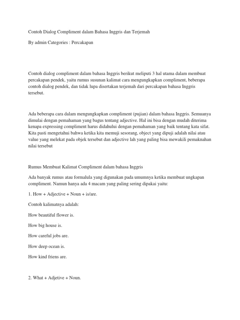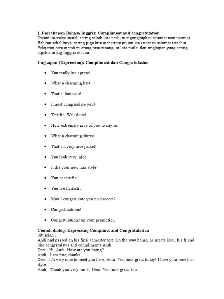 DOC) Percakapan Bahasa Inggris: Compliment and congratulation Dalam interaksi sosial | Dwi Cahyo - Academia.edu