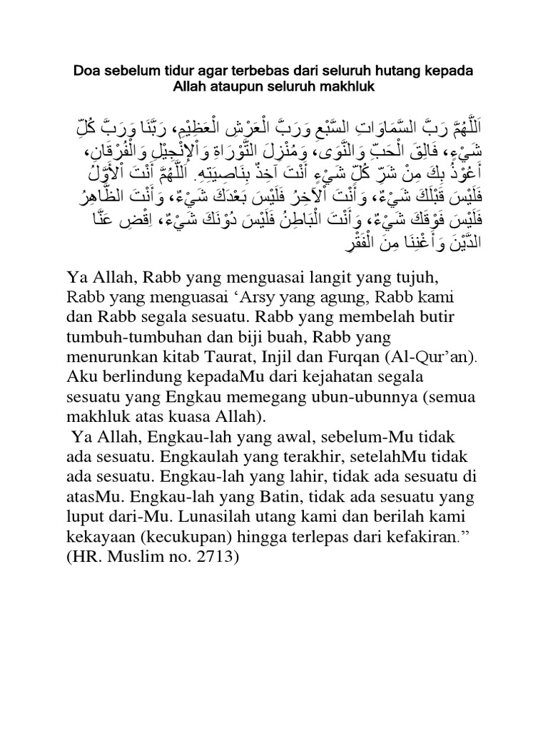 Doa sebelum tidur agar terbebas dari seluruh hutang kepada Allah …