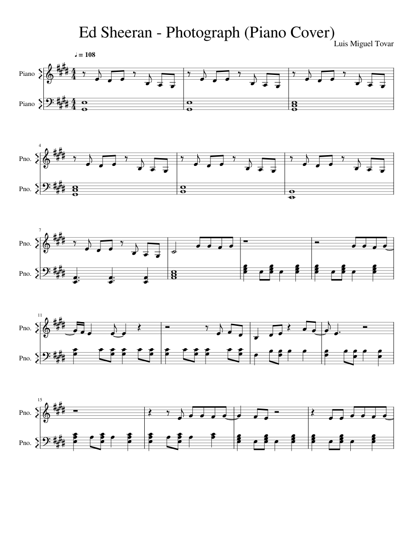Ed Sheeran - Photograph (Piano Cover) Sheet music for Piano (Piano Duo) | Musescore.com