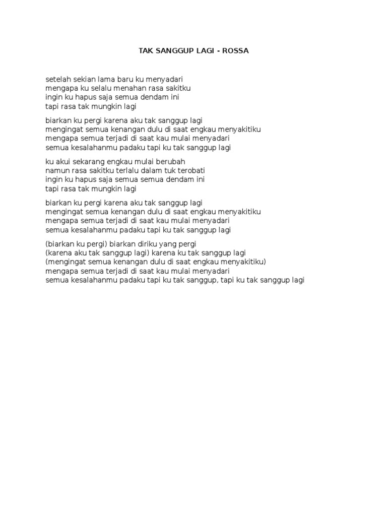 Download MP3 Lagu Tak Sanggup Lagi - Rossa, Lengkap dengan Lirik …