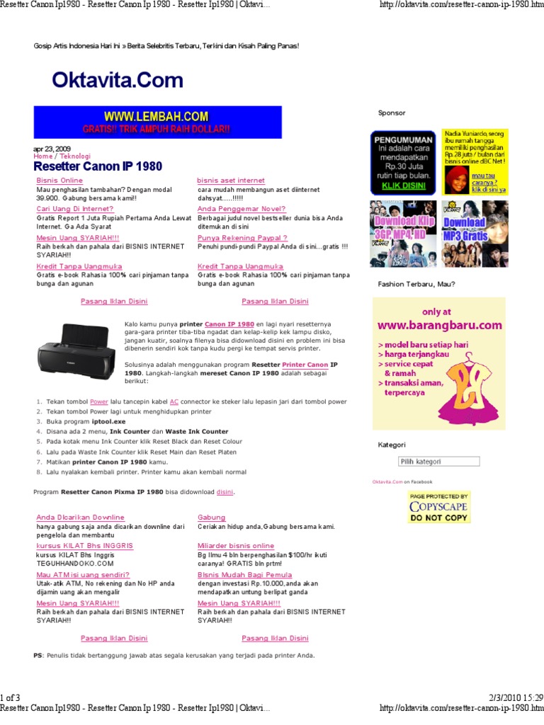 PDF) tips and tricks collections: Reset Canon IP 1980 Menggunakan …