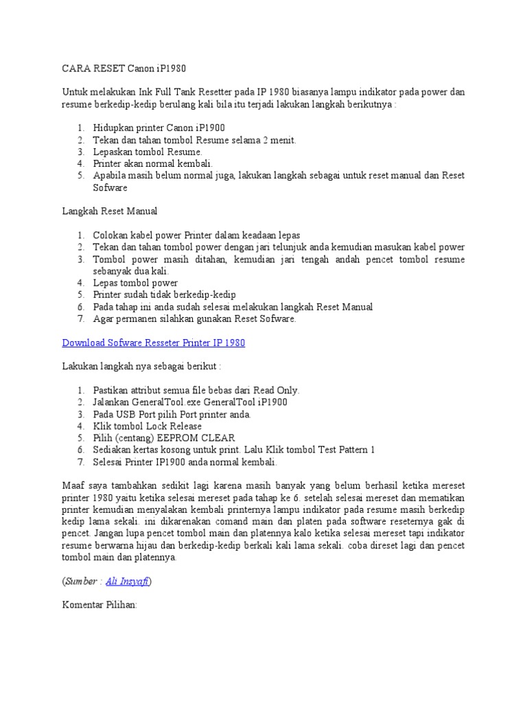 Cara reset printer canon ip 1980 secara total - [DOCX Document]