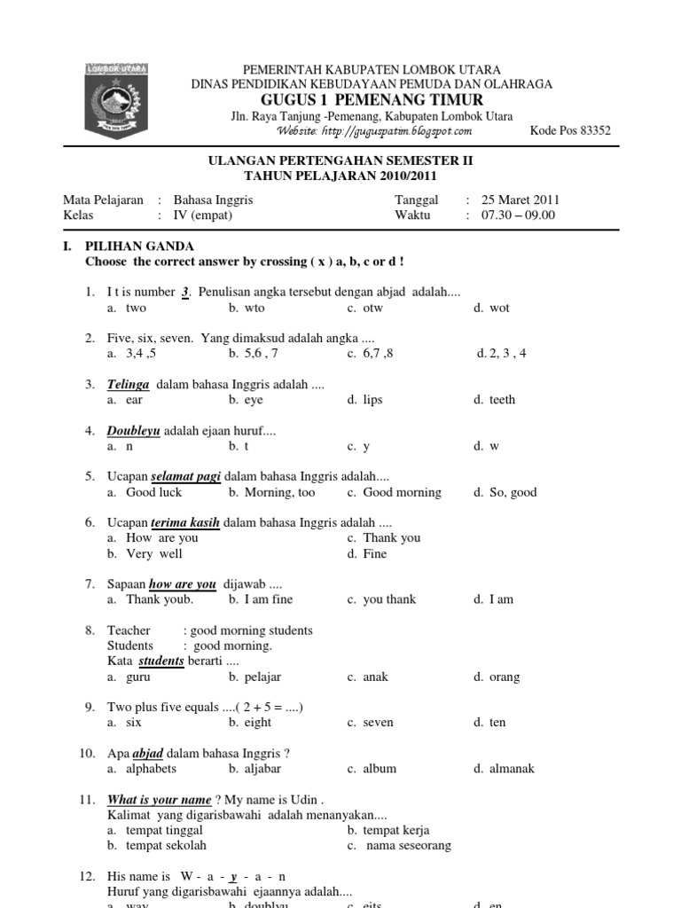 Soal bahasa inggris spelling alphabet dan matematic symbol