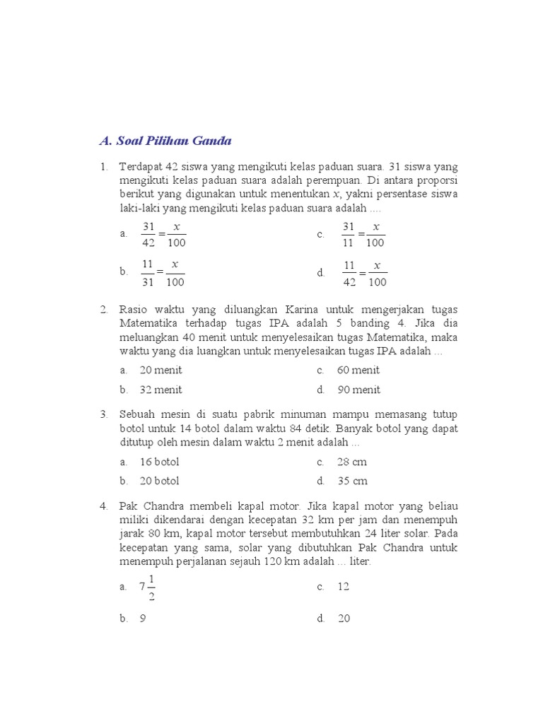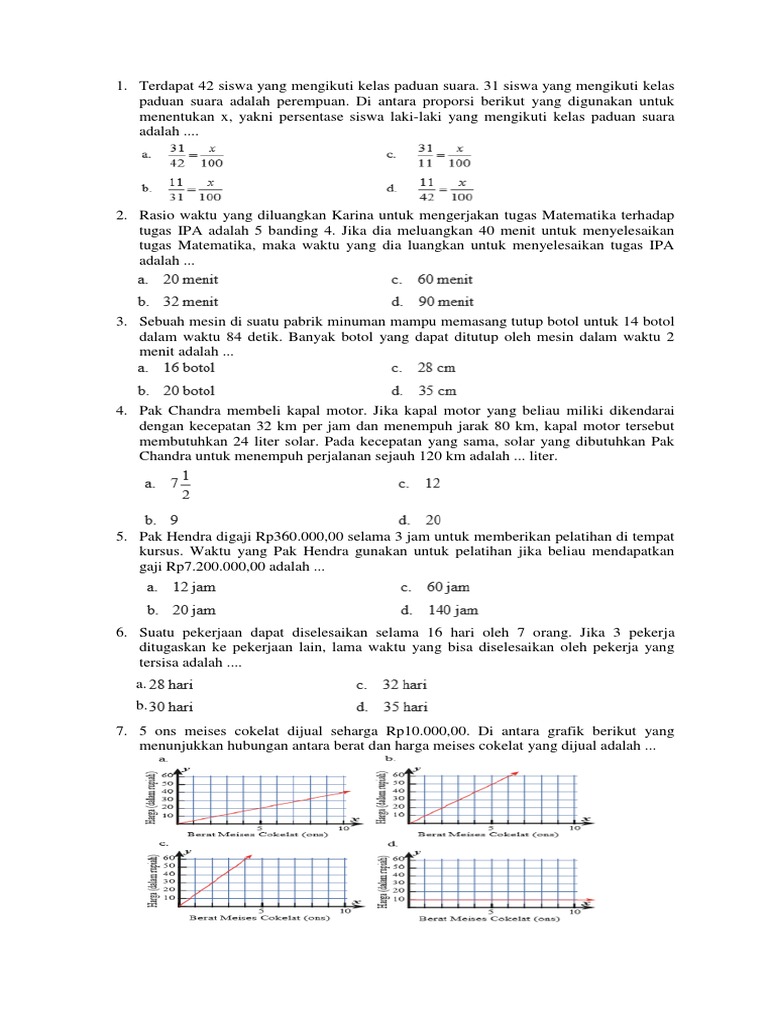 Kelas 7 - Perbandingan - Uji Kompetensi 5 - PG by un petit-dejeuner86