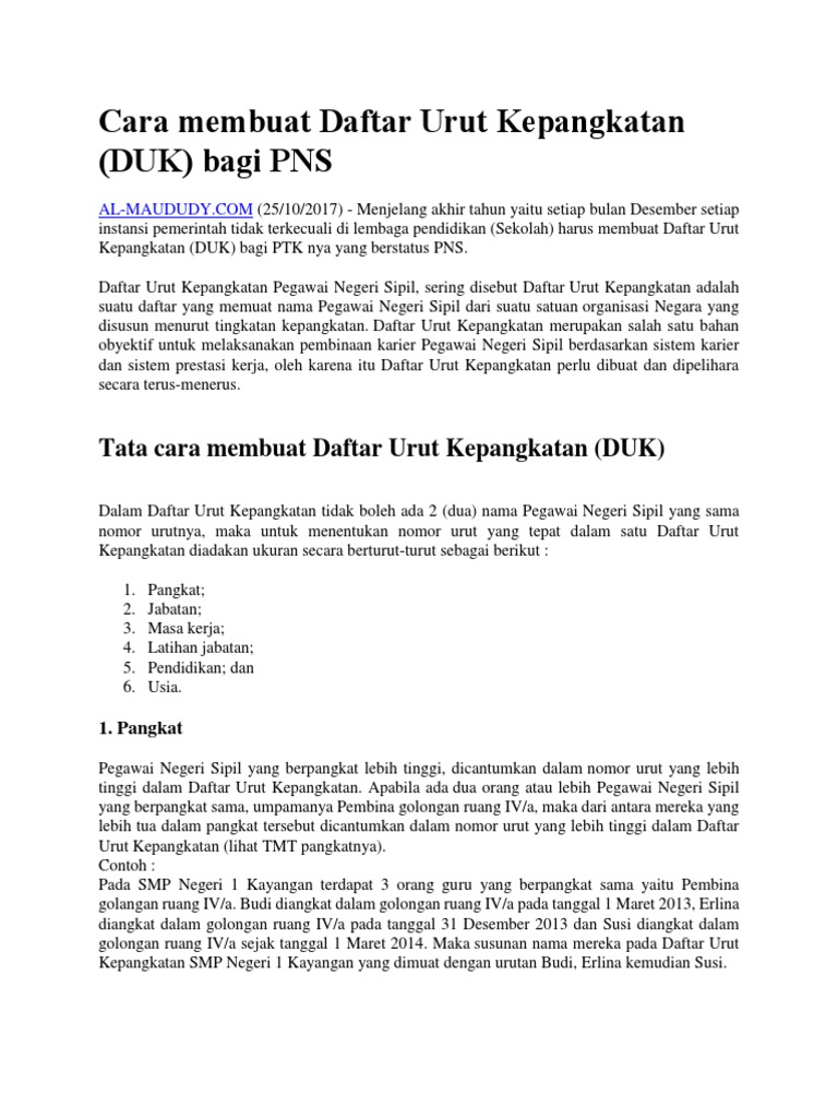 Contoh Format Daftar Urut Kepangkatan (DUK) PNS Terbaru - Info …