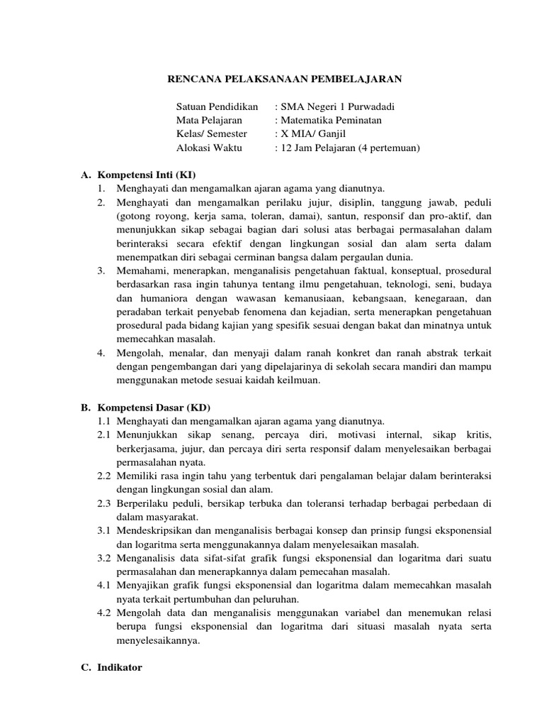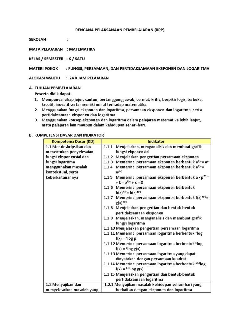 DOC) 1. fungsi eksponen dan logaritma - rpp x mia peminatan - rpp …