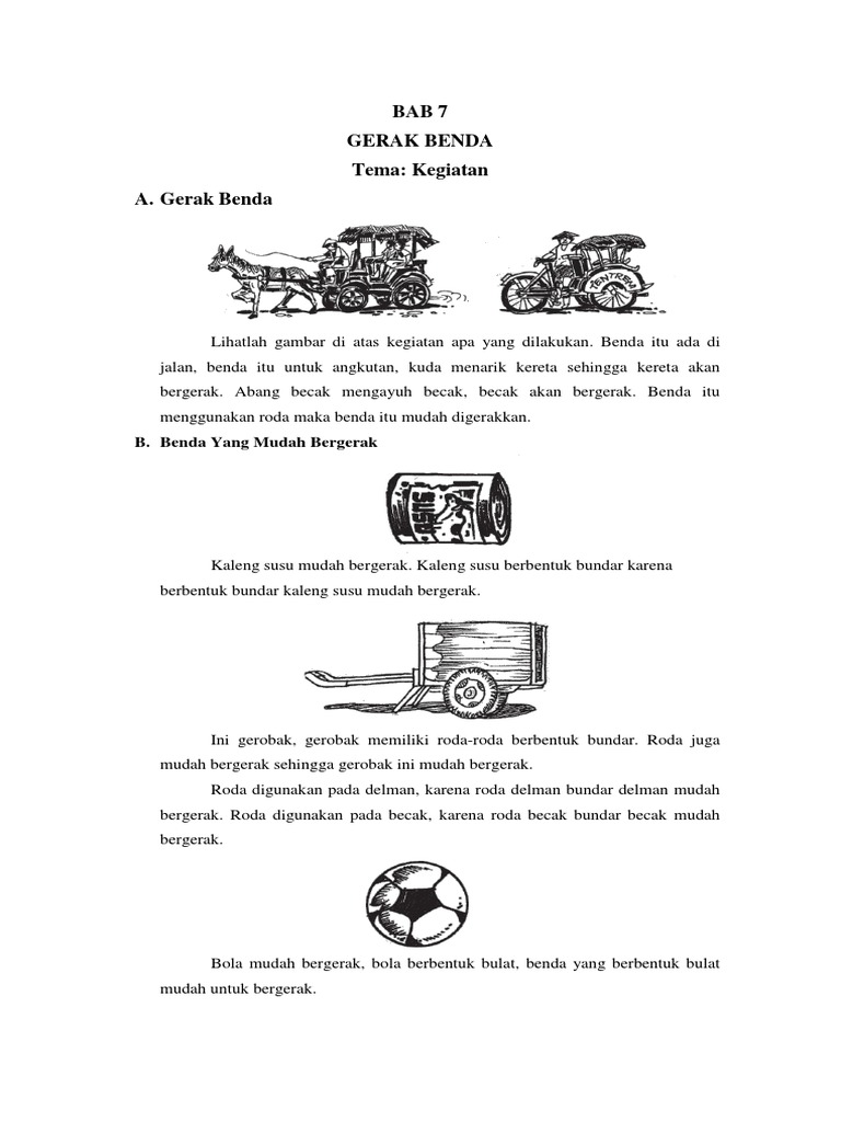 Bab 7 Gerak Benda Tema: Kegiatan A. Gerak Benda: B. Benda Yang Mudah Bergerak