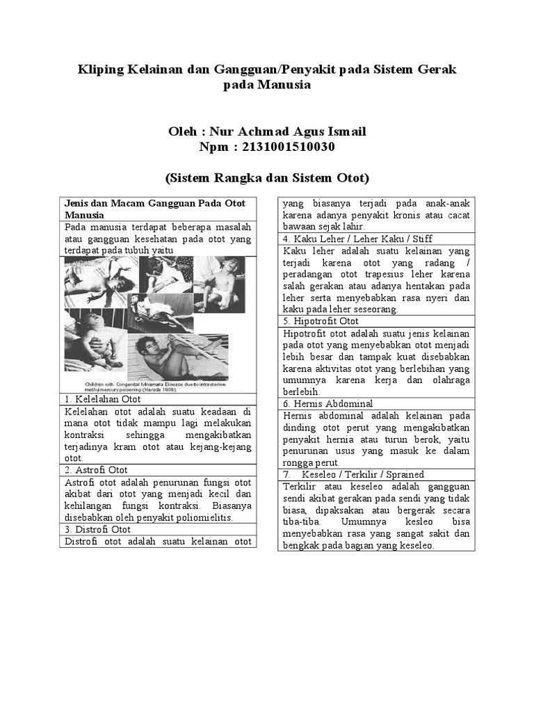 Gangguan, Penyakit Dan Kelainan Pada Sistim Gerak Manusia …