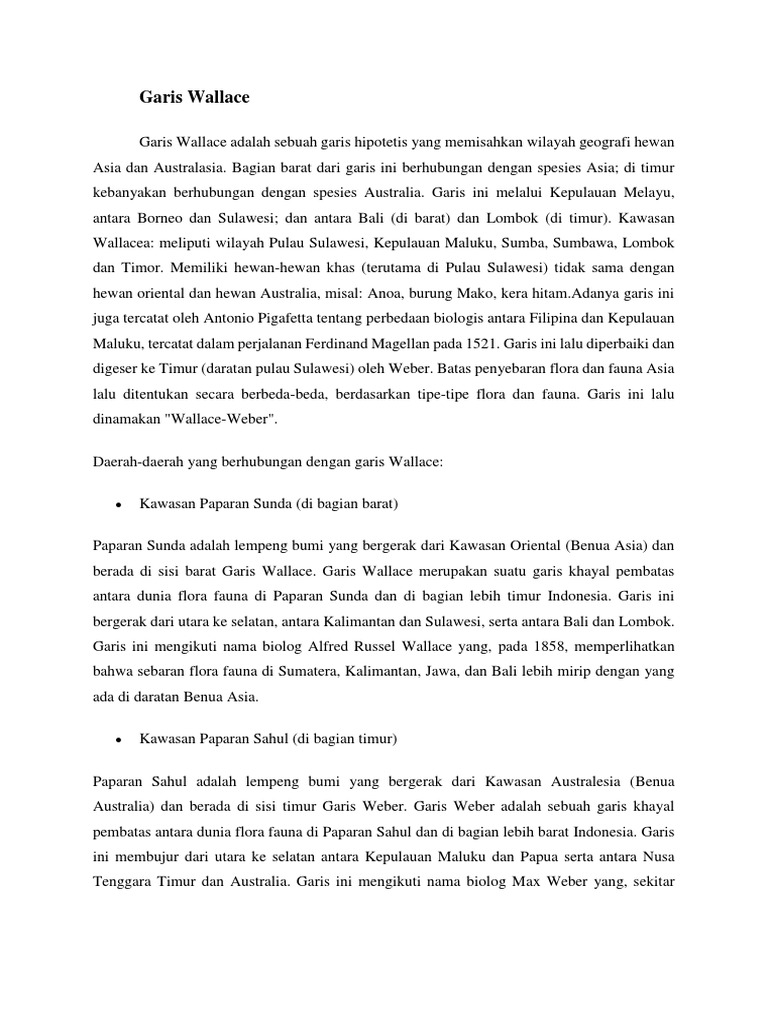 jelaskan garis wallace dan garis weber sebagai pembatas flora dan …