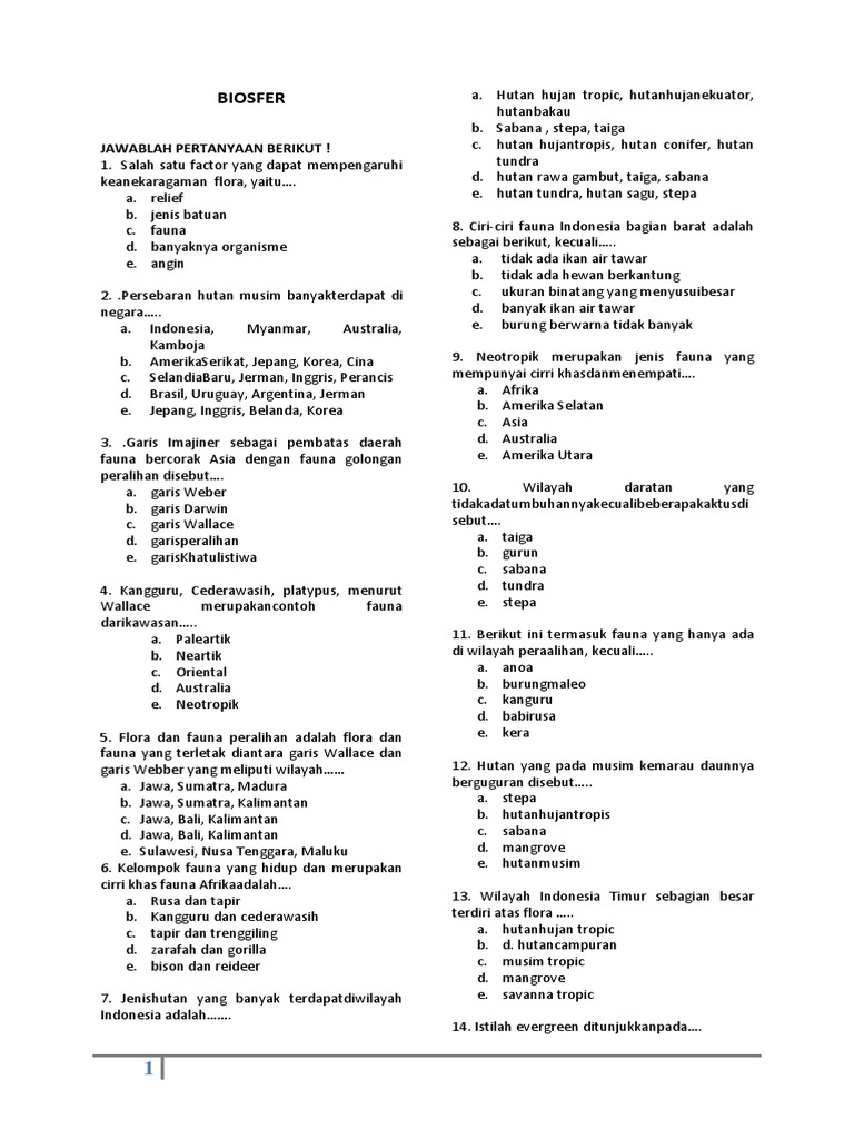 Biosfer: Jawablah Pertanyaan Berikut !