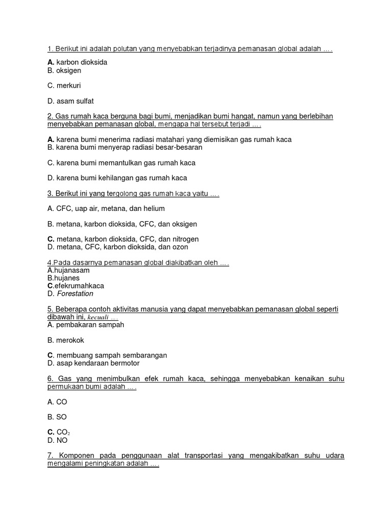 SOAL PEMANASAN GLOBAL | Science Quiz - Quizizz