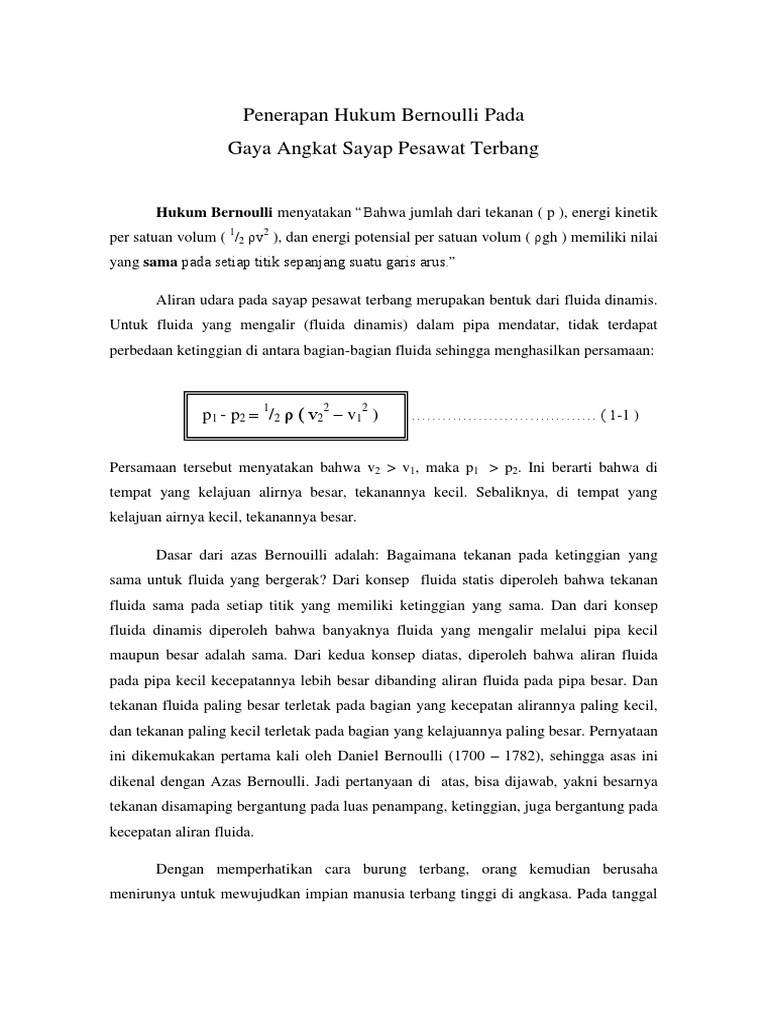Penerapan Asas Bernoulli Pada Gaya Angkat Sayap pada Pesawat …