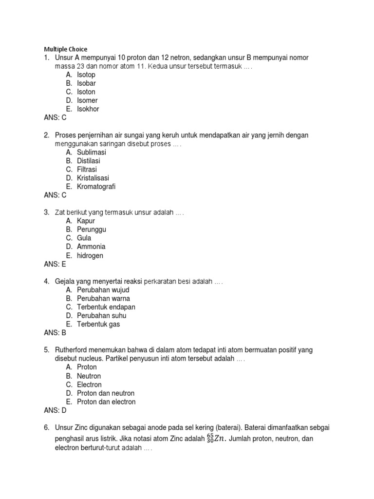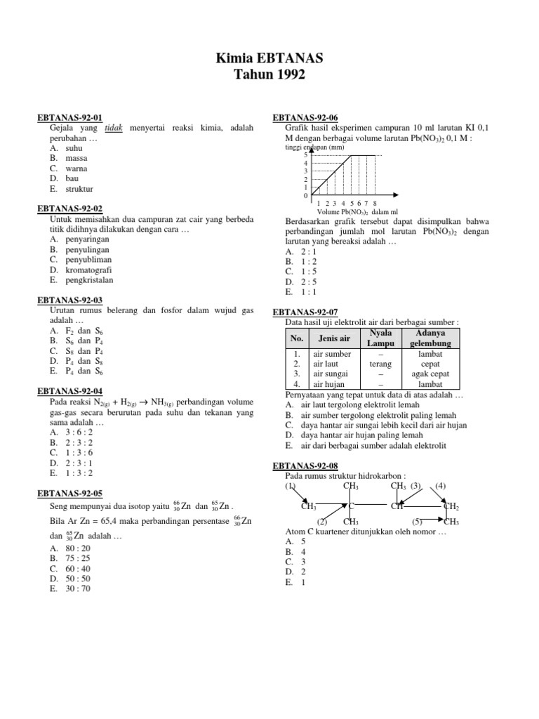 1. Gejala yang tidak menyertai reaksi kimia, adalah perubahan A. warna B. bau C. suhu D. massa E. struktur - PDF Free Download