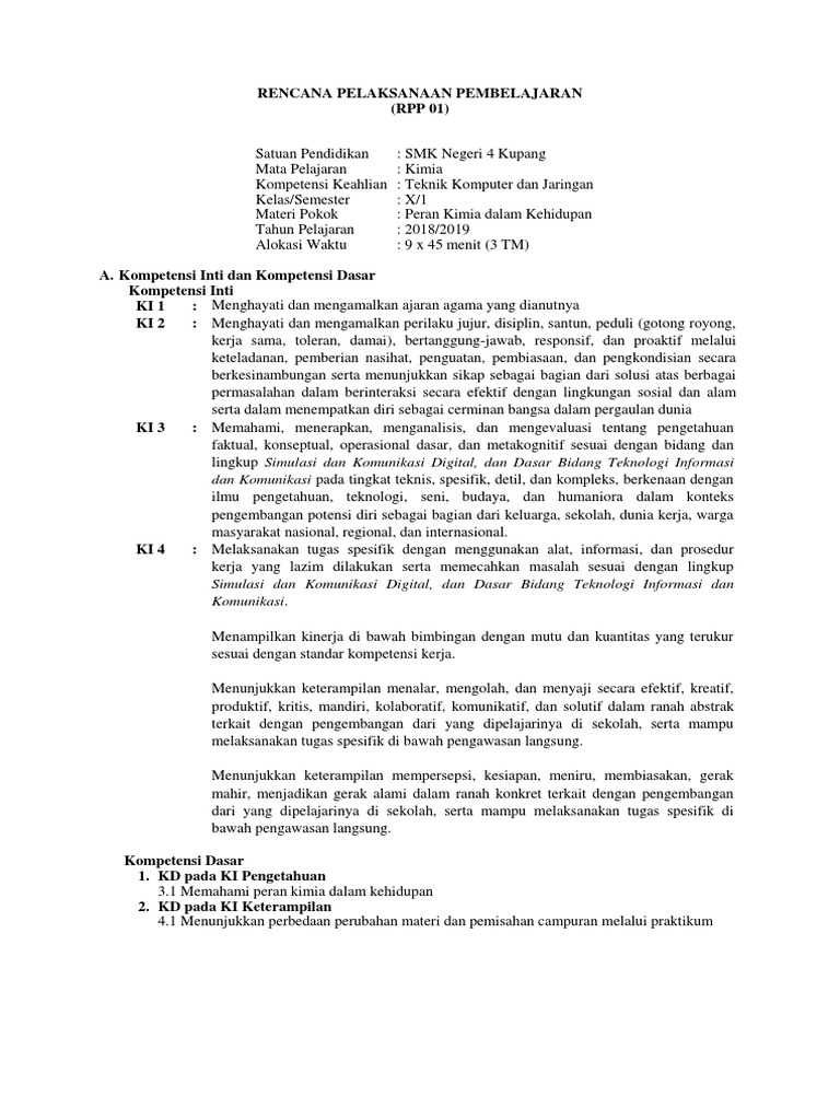 K13-Rpp KIMIA SMK TKJ KELAS X KD 3.1